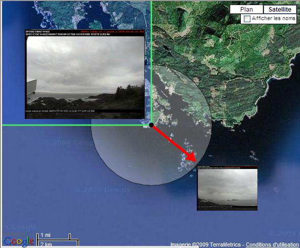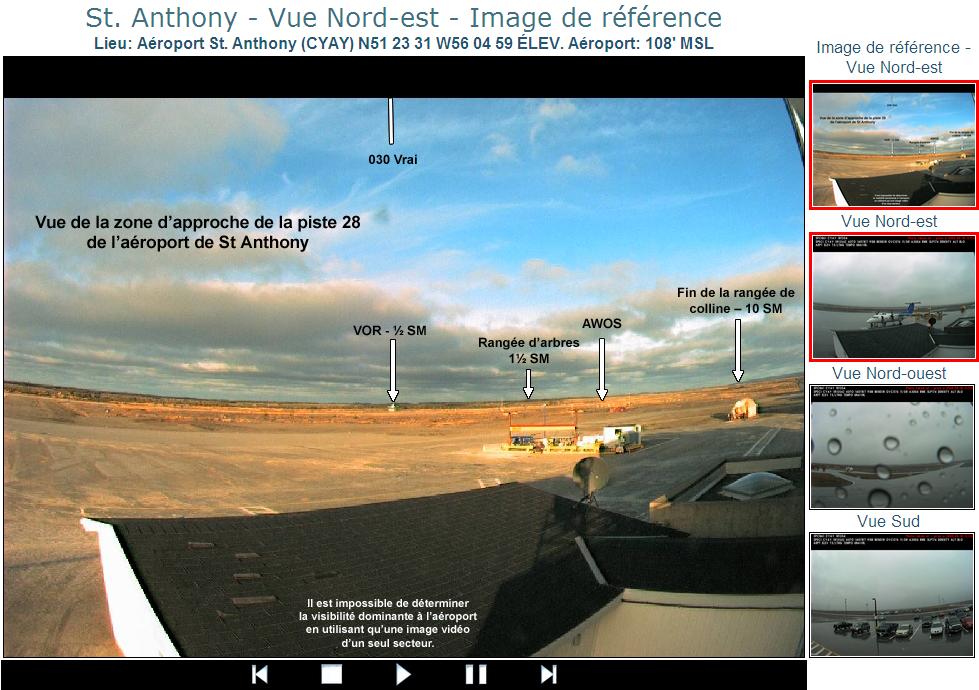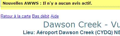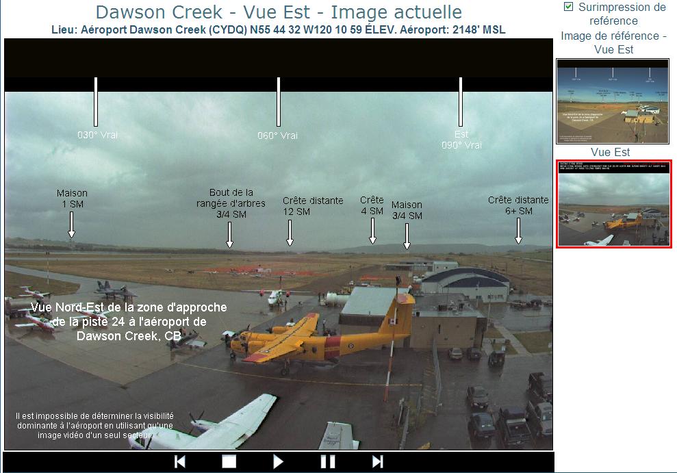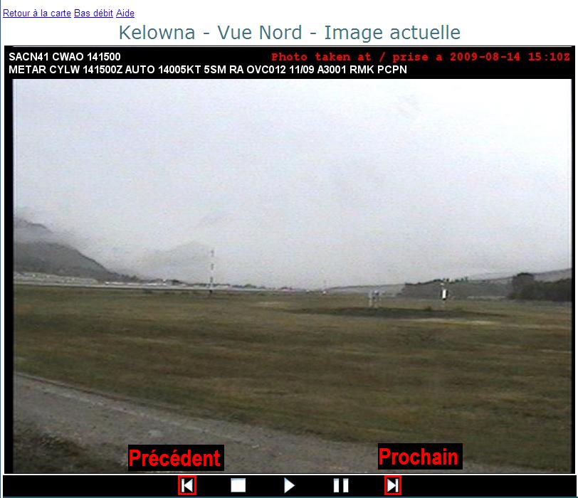 Chaque page est marquée d’une estampille temporelle inscrite en police rouge dans la partie supérieure. L’estampille temporelle indique, en UTC, quand l’image a été prise. Chaque image comprend également un outil d’observation météorologique que l’on trouve inscrit en police blanche, dans la partie supérieure, sous l’estampille temporelle. Si une observation météorologique n’est pas disponible en temps réel pour un site sélectionné, le message « observation météorologique non disponible » sera affiché.